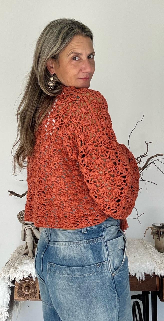 En el Curso Saco Lirio vas a aprender a tejer un abrigo liviano, calado y súper versátil, pensado para acompañarte en cualquier época del año.