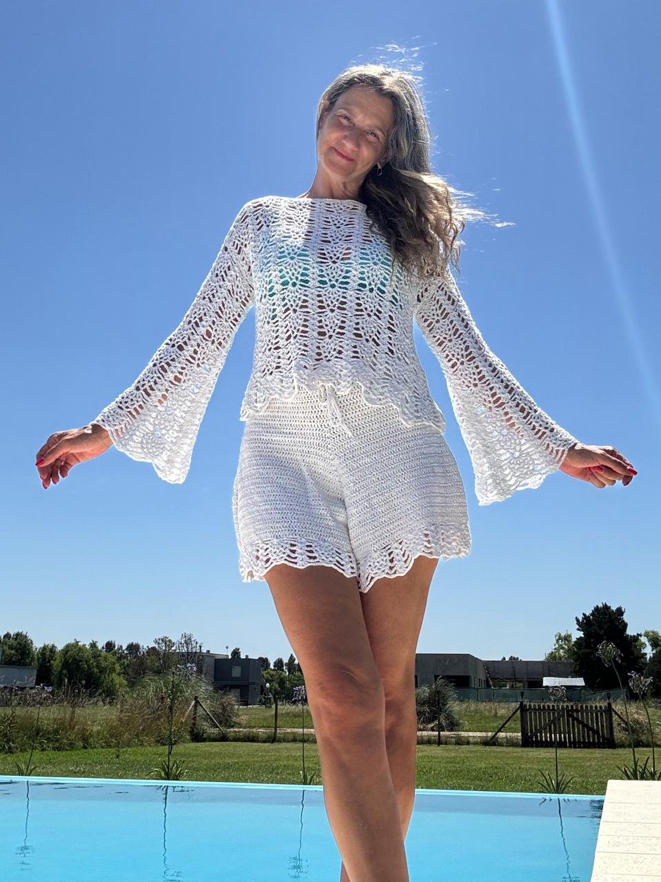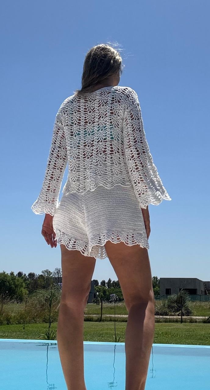 Es esa prenda de crochet que va a transformar tu guardarropa. Con un diseño de calados finos y un corte relajado, esta blusa es perfecta para esas tardes de primavera y noches de verano en las que quieres algo cómodo, fresco y chic. 🌙✨