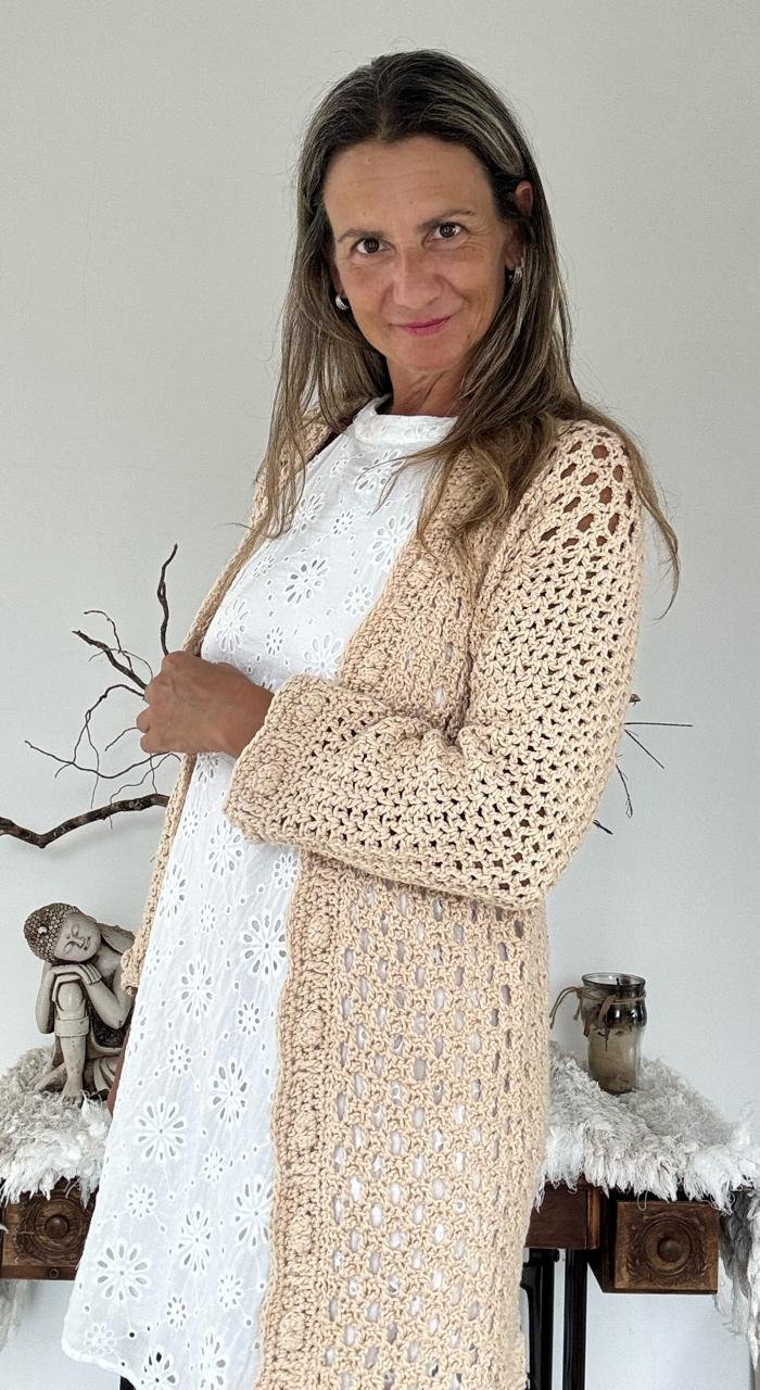 - ¿Te preocupa que no te quede bien? ¡Tranquila! Te voy a enseñar a adaptar el patrón a tu medida para que luzcas ese cardigan como una verdadera diosa del crochet. ¡Nada de cardigans que parecen sacos!
