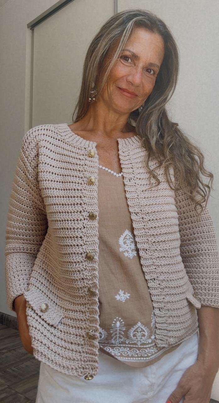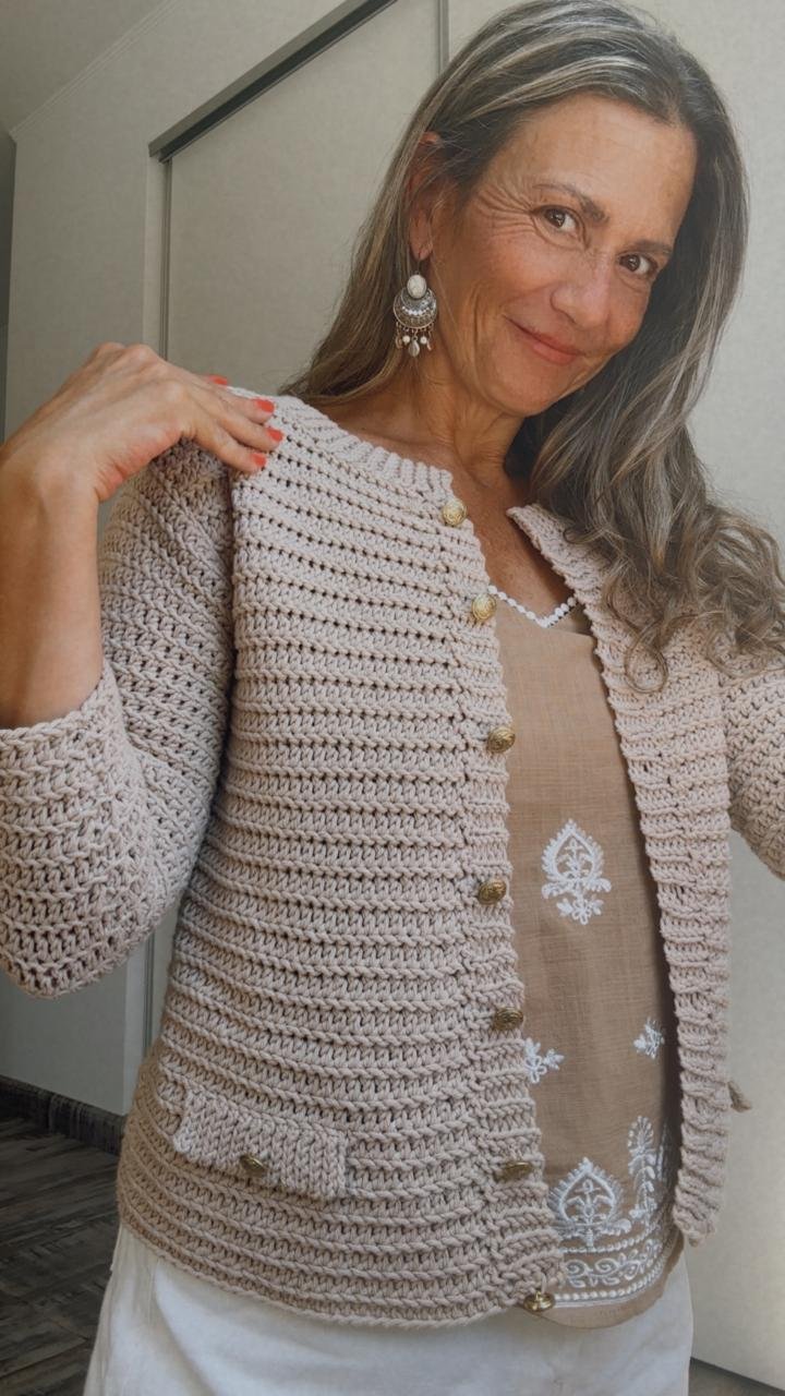 Todo está pensado para que te sientas acompañada en cada punto y logres una chaqueta perfecta, tejida a tu estilo y medida. ¡Es como si estuviéramos tejiendo juntas! 😊