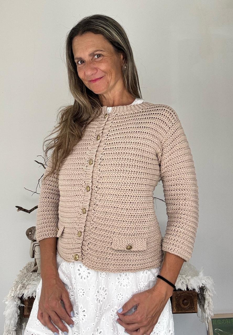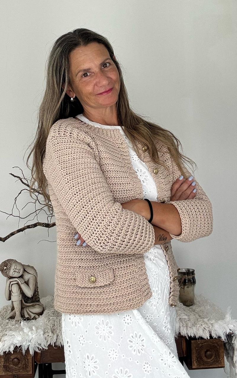 ¡Bienvenida a la guía de la Chaqueta Olivia! 🌸 Acá te cuento todo lo que necesitas saber para tejer esta chaqueta tan especial, que está tejida a crochet pero simula el tricot. ¡Lo mejor de dos mundos! 😍