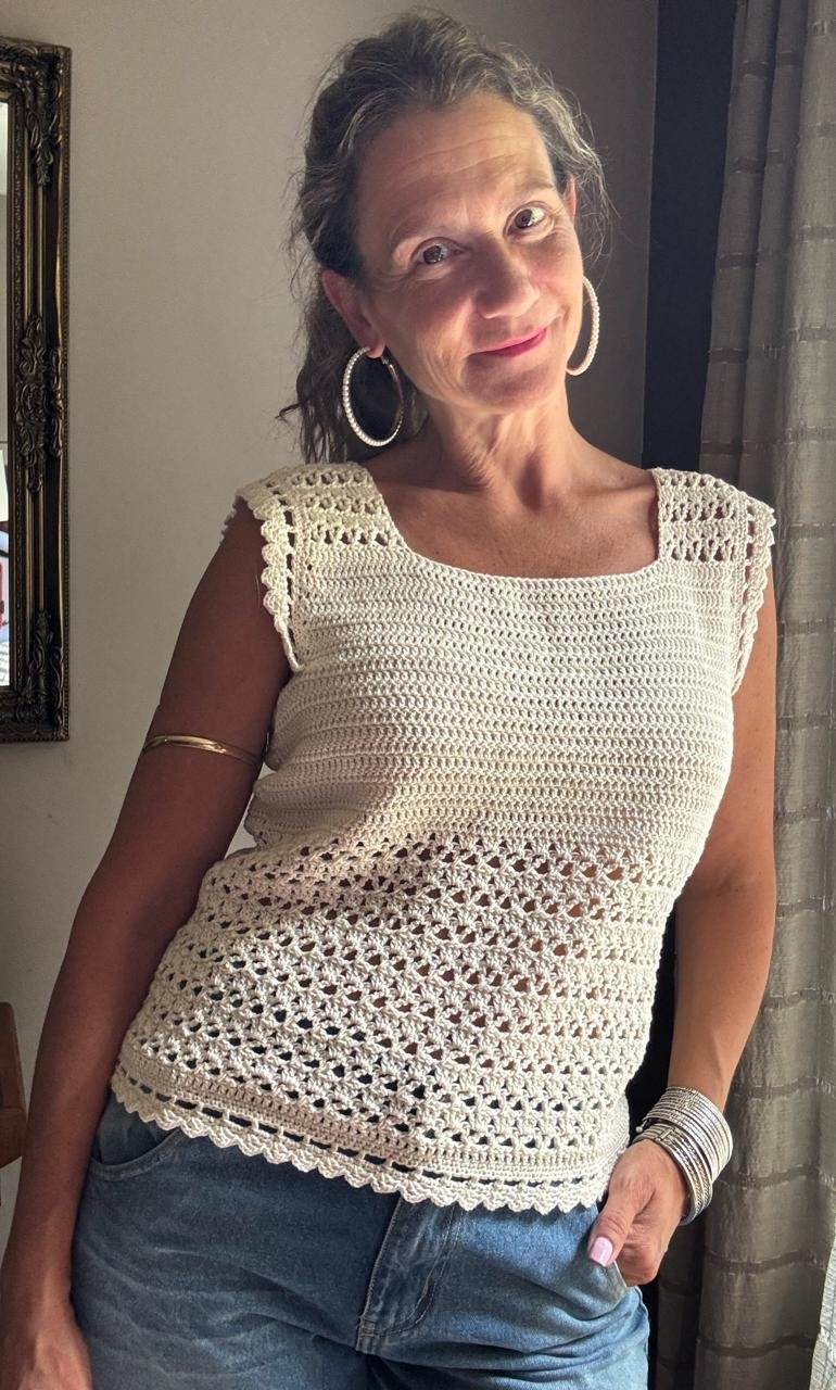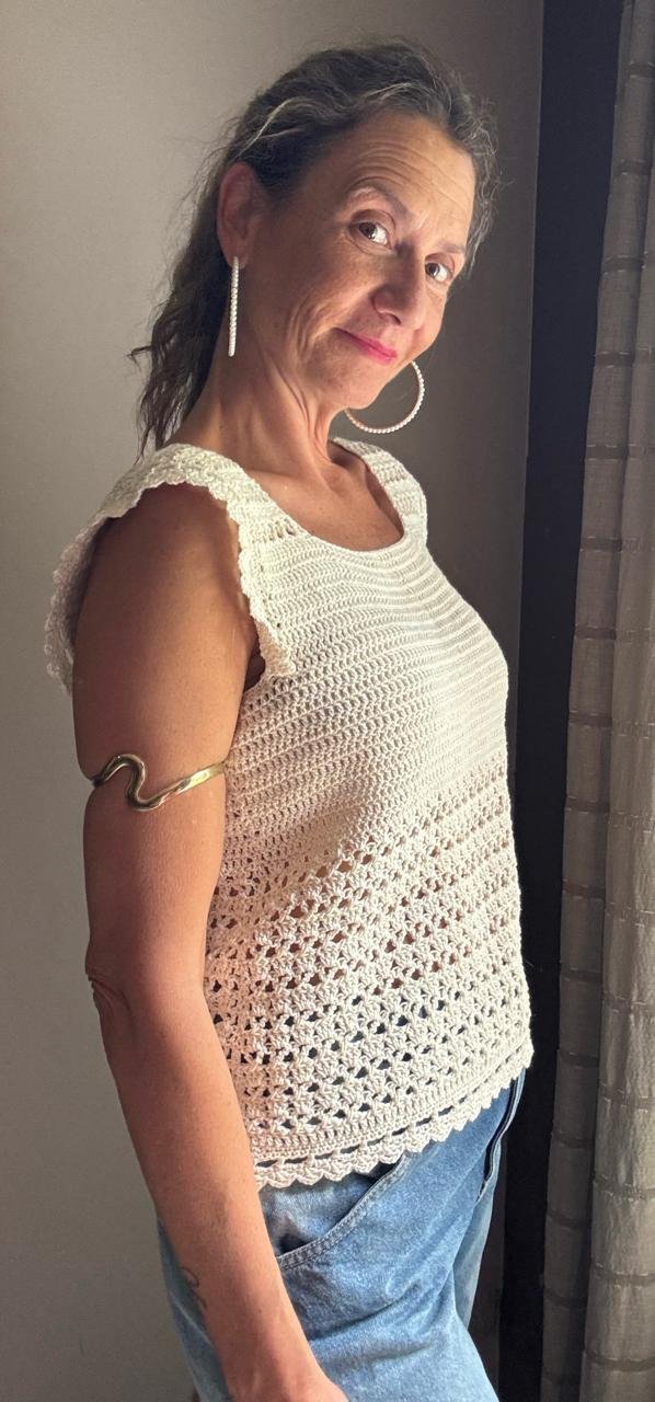 Si buscabas un top que combine comodidad, estilo y ese toque artesanal que hace que todo el mundo te pregunte: «¿Dónde lo compraste?», entonces este estás para vos.