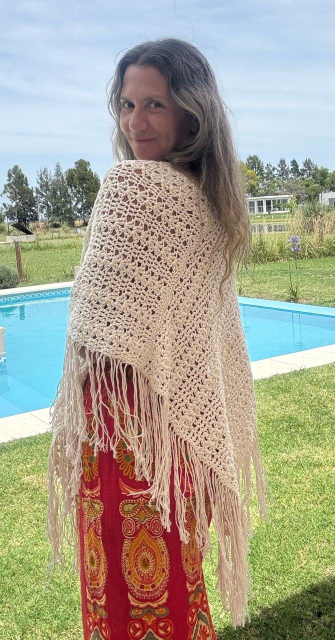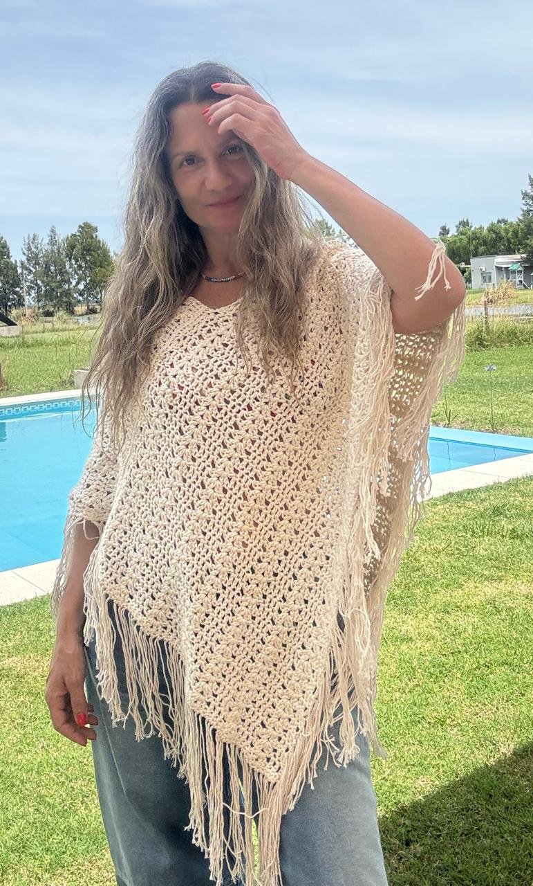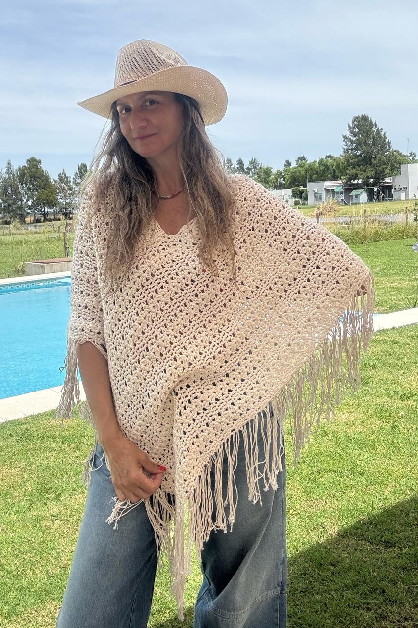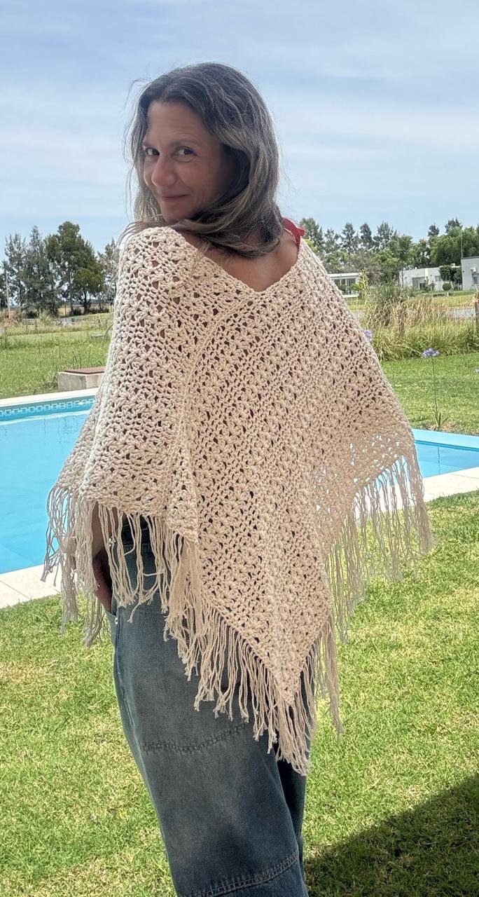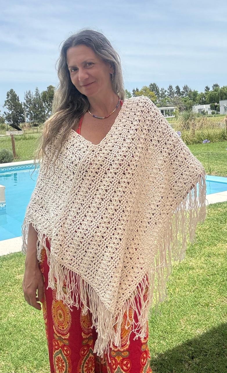 Las medidas del Poncho terminado son 86 cms de ancho x 76 cms de alto (sin flecos)